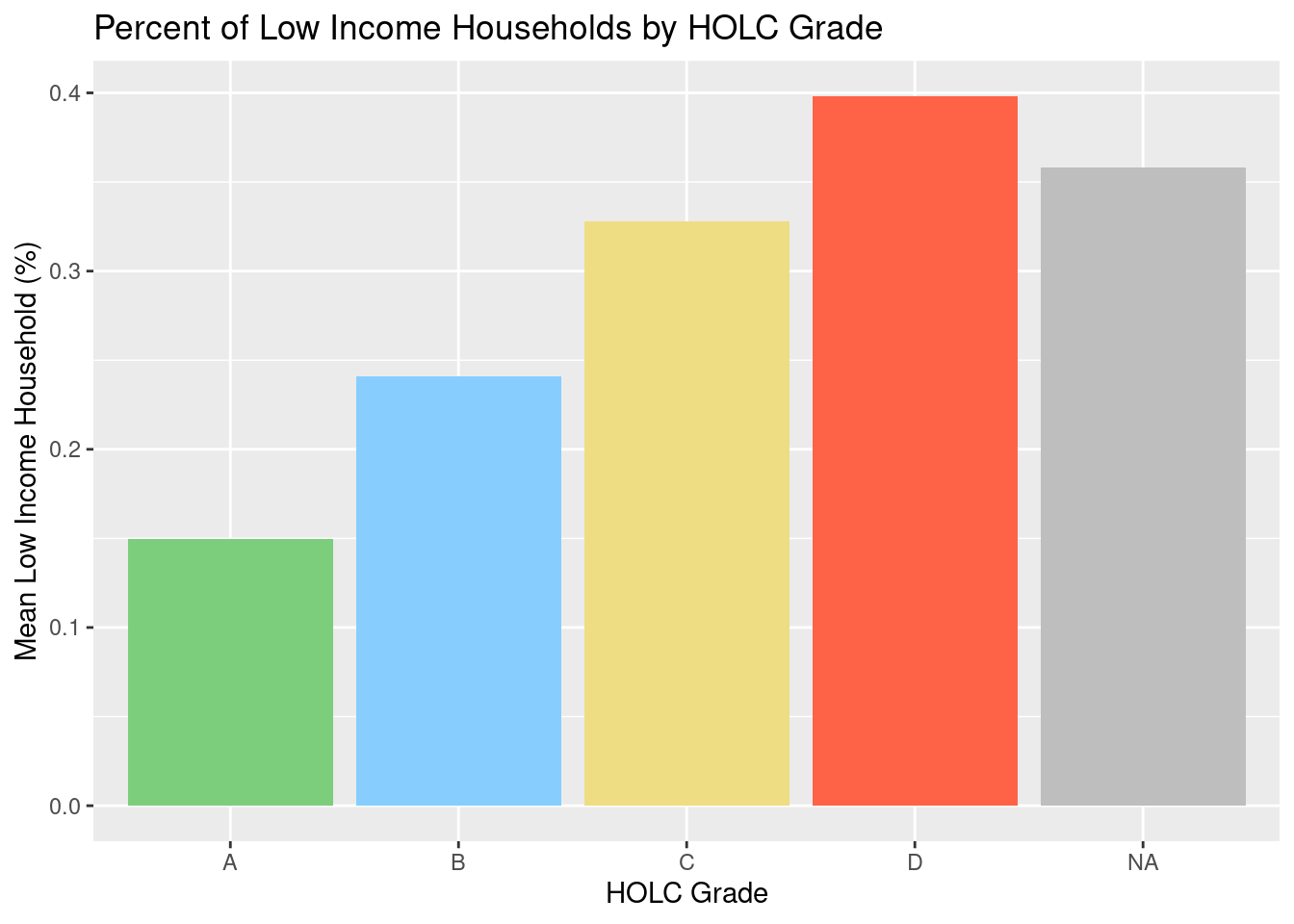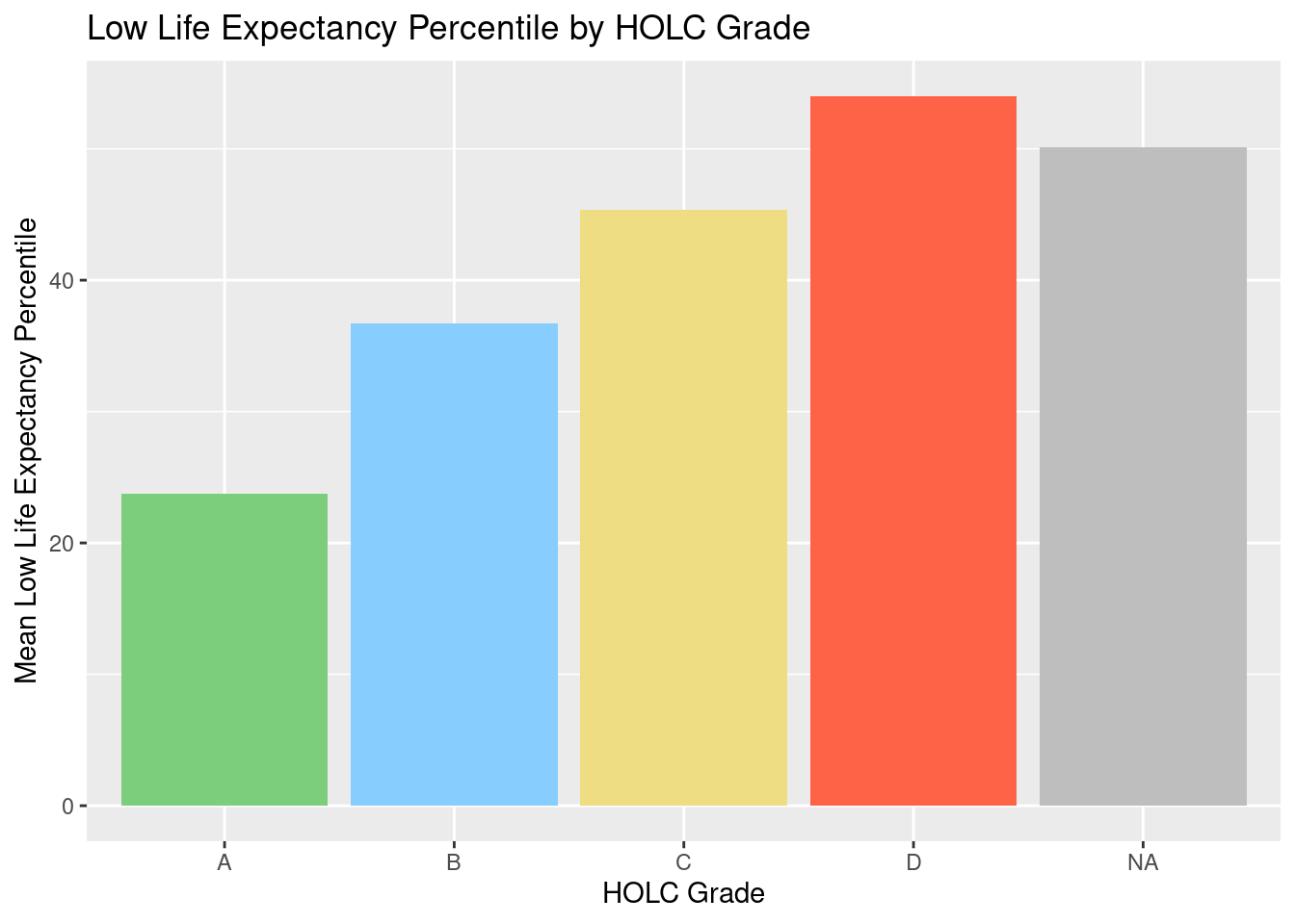 title = "Low Life Expectancy Percentile by HOLC Grade")