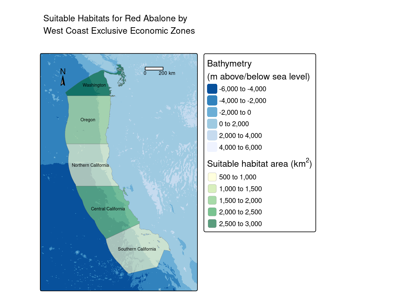main.title = paste("Suitable Habitats for", species, "by \nWest Coast Exclusive Economic Zones"))